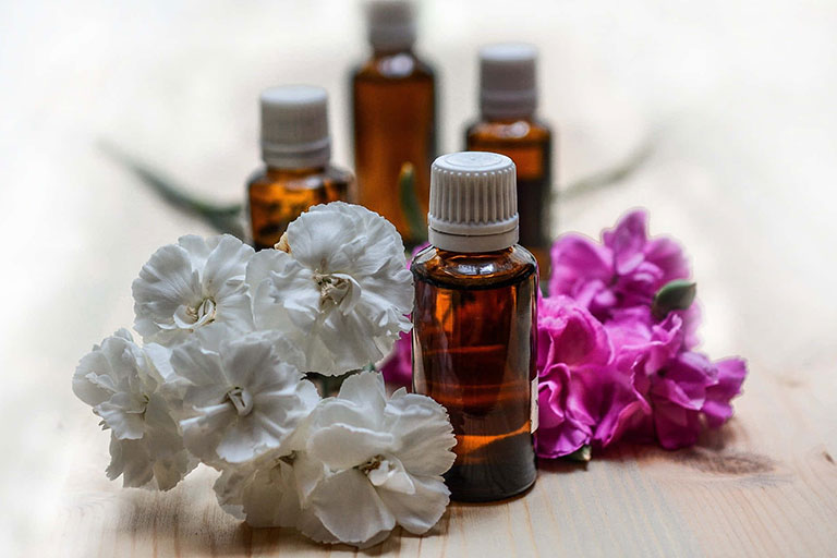 Na aromaterapia com óleos essenciais, eles são geralmente diluídos em óleos vegetais ou outros veículos antes de serem aplicados na pele ou inalados.